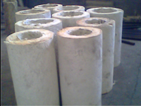 将富含一定比重的粘结剂的硅酸铝毛毡坯料送入卷取机展开卷管,固化后形成成型的硅酸铝纤维管壳。
